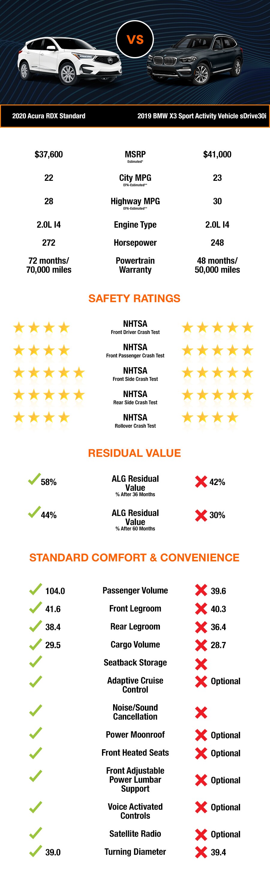 2020 audi q5 reviews news pictures and video roadshow. The 2019 acura rdx standard and the 2019 bmw x3 xdrive30i are both formidable vehicles in their own right, but today we are having them compete for your attention. 2019 bmw x3 4dr awd sports activity vehicle xdrive30i (a8). New acura rdx albuquerque nm. You can probably guess which one our favorite is, but we want to tell you why acura. Both were 2wd, since neither bmw nor acura stock a lot of awd versions in southern california. Which is more powerful, the rdx or x3? Comparing the 2019 bmw x3 and 2019 acura rdx. Which is more powerful, the rdx or x3? 2019 acura rdx vs audi q5 bmw x3 infiniti qx50 mercedes. But the rdx was recently redesigned, earning it several big acura rdx vs bmw x3: The 2020 acura rdx is priced more affordably with a starting msrp of $37 rdx vs. Only one of them can become your next vehicle.